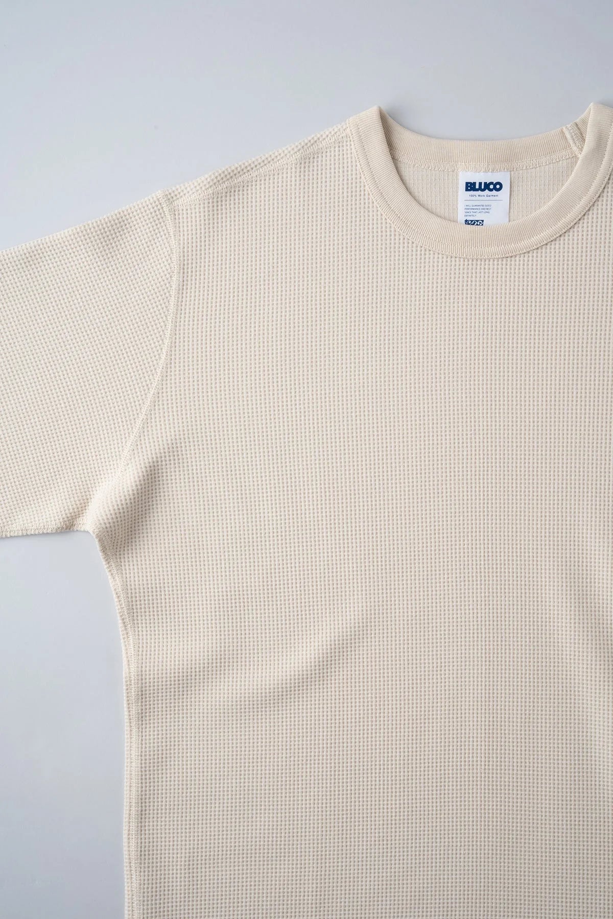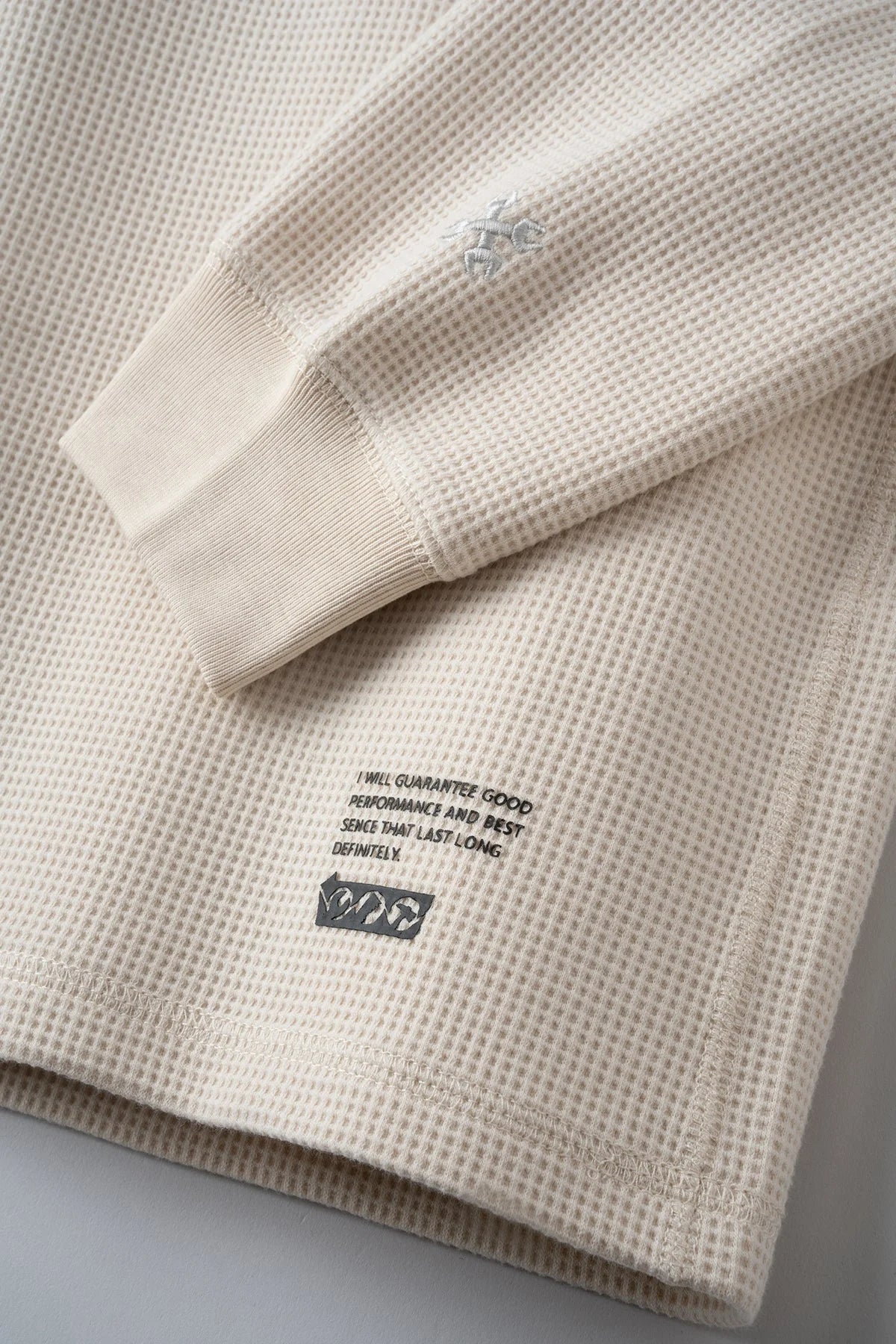 高い保温性を誇るワッフル編みの表面と、肌触りの良いフラットな裏面を組み合わせた生地を採用。この独自の構造により、保温性と快適性を両立した着心地の良い一着に仕上げています。