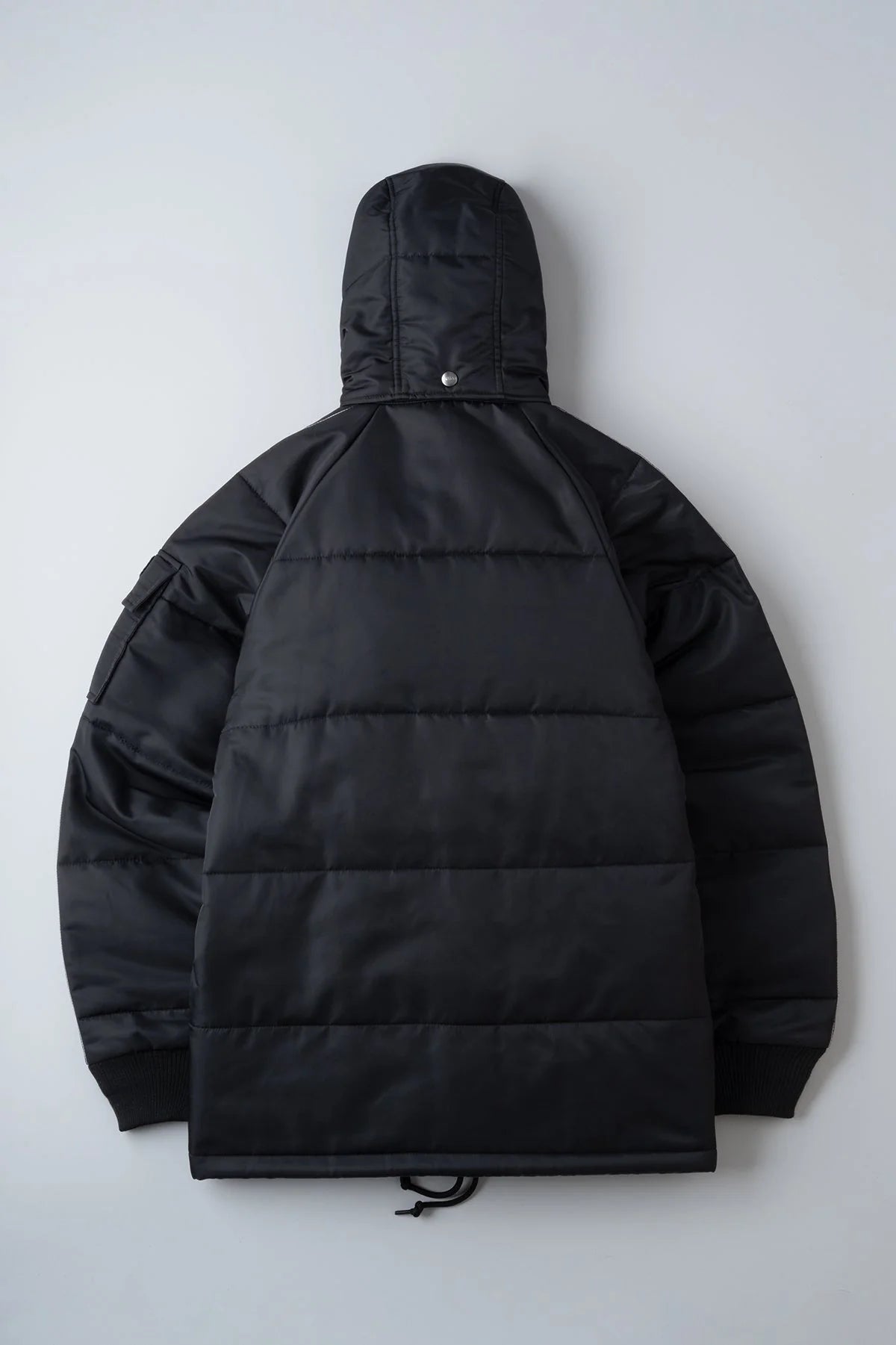 人気のレーシングジャケットが仕様を一新して登場。表地にはヘビーナイロンツイルを採用し、ヴィンテージに見られた取り外し可能な大型フードを新たにセット。中綿にはシンサレートを使用し、防寒性・耐久性・機能性を高めたアップデートモデルです。