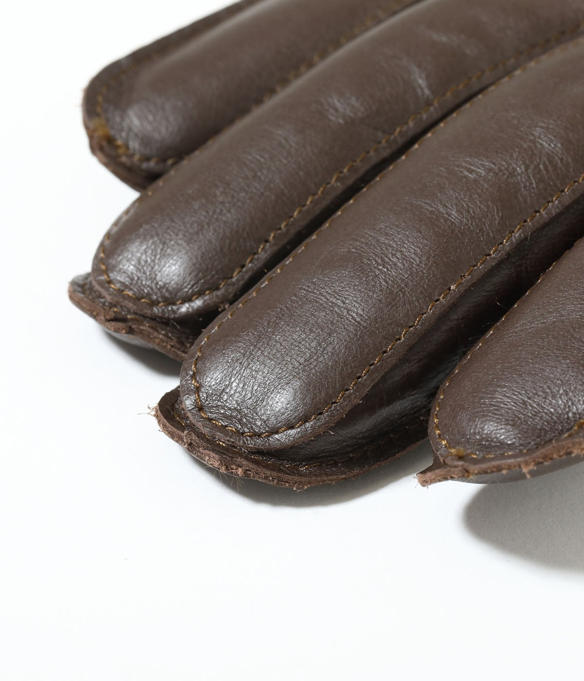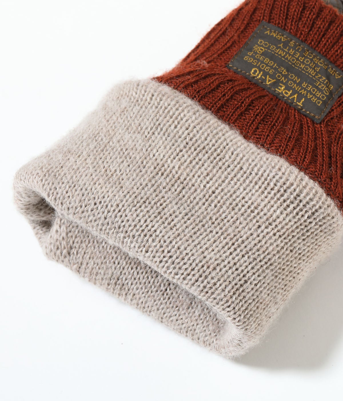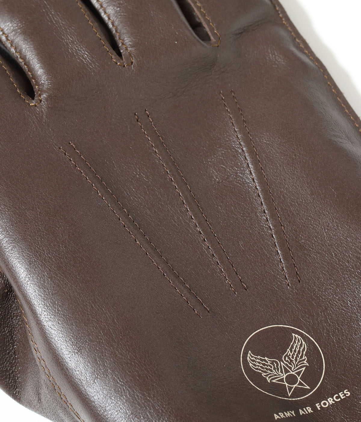 米陸軍航空隊のタイプA-10グローブはパイロットの冬季用グローブとして1938年から採用された。メインマテリアルとなる革はゴートスキンかポニーハイドを使用するよう規定され、ライニングには肌触りの良いウール100%のニットが使用されている。手首にはストレスの掛からないチューブ編みのウールニットが装着され、このニットには着用時に伸びを防ぐ補強用の当て革が縫い付けられている。手の甲に施された3本のステッチは革の伸びを抑え、フィット感を維持するためのディテール。5本の指周りを往復する手の平側と甲側の縫製は高度な縫製技術が要求され、繊細なステッチが時間を掛けて丁寧に縫い上げられたことを物語る。