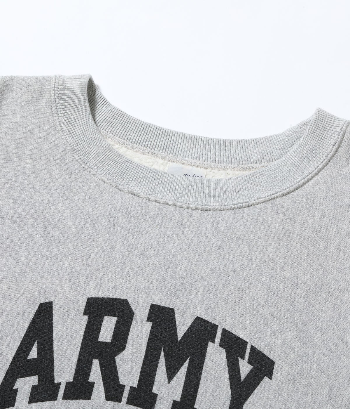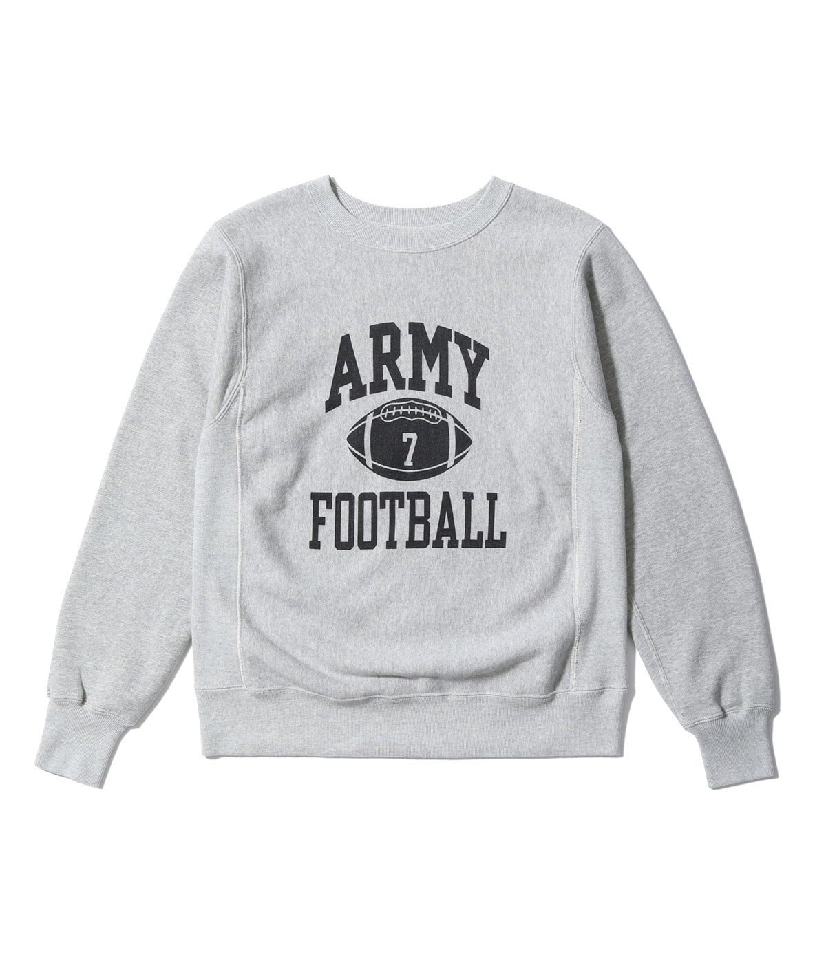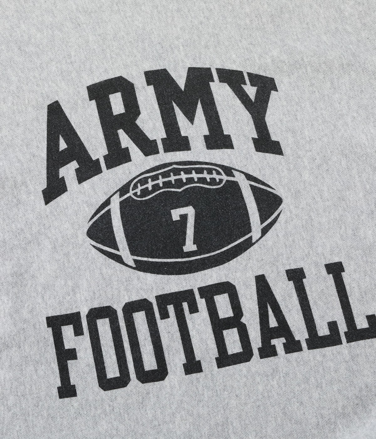 沿岸警備隊のトレーニング時に着用されたスウェットシャツ。仕様は身頃の生地を横使いし、サイドにリブ素材と切り替えたホリゾンタル・ニッティング。ホリゾンタルとは「横方向」という意味で、丈の縮みを防止すると共に縦横の伸縮性を意識している。このような仕様でミリタリーに関連した柄は稀少性が高く、ヴィンテージ市場において価格が高騰している。1802年に、ニューヨーク州のウエストポイントに設立された陸軍士官学校は米国で最も古い士官学校。陸軍士官学校と永遠のライバルでもある海軍士官学校のカレッジフットボールの試合は米国では伝統の試合となっている。シンプルなブロック体にフットボールが効いたスポーティーなプリントデザイン。