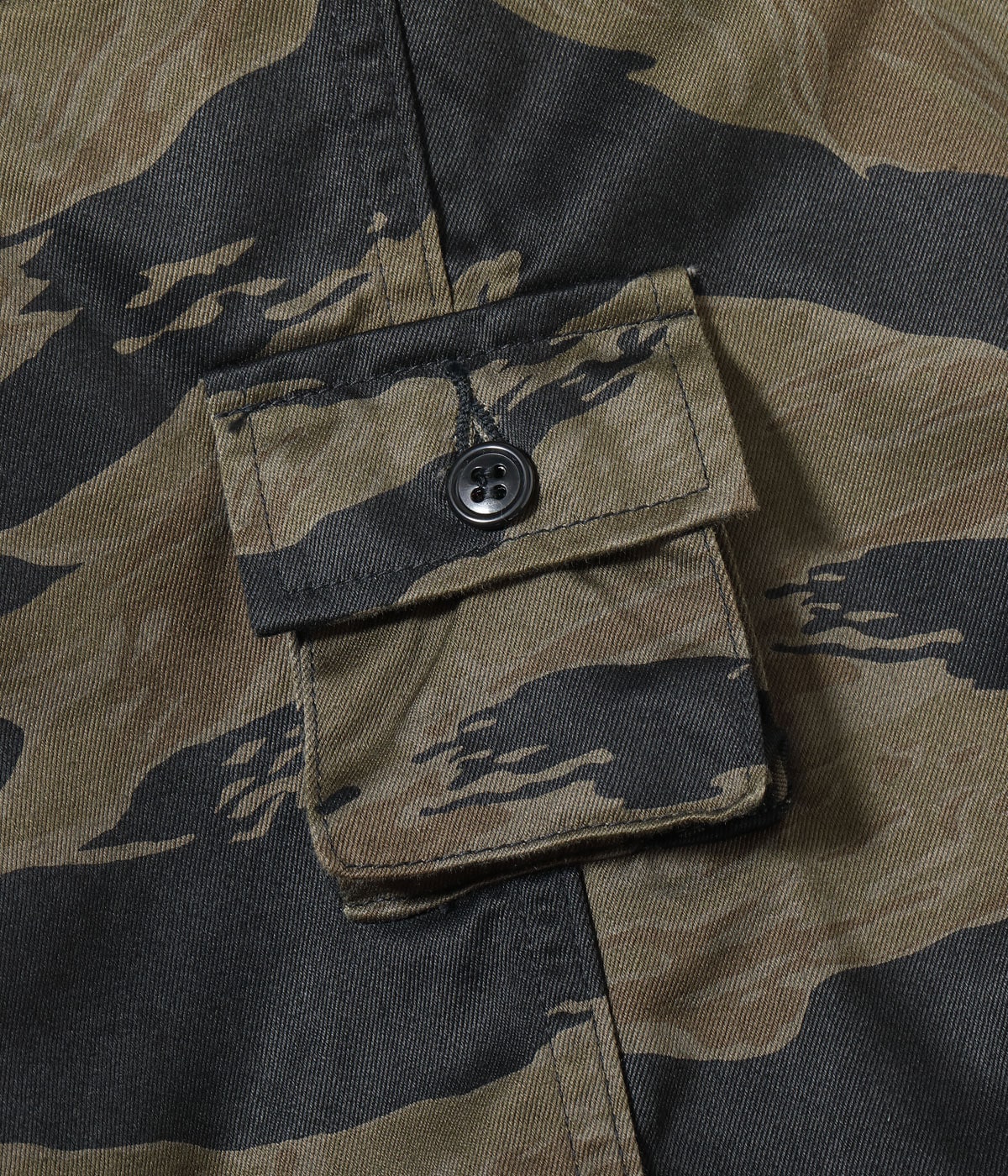 ベトナム戦争当時にタイガーパターンをオーバーダイ(後染め)したものが実在している。タイガーストライプは元来官給品では無いため、兵士達も比較的自由に扱った。着込んで洗うほどにタイガーパターンが浮かび上がってくる過程を堪能したい。