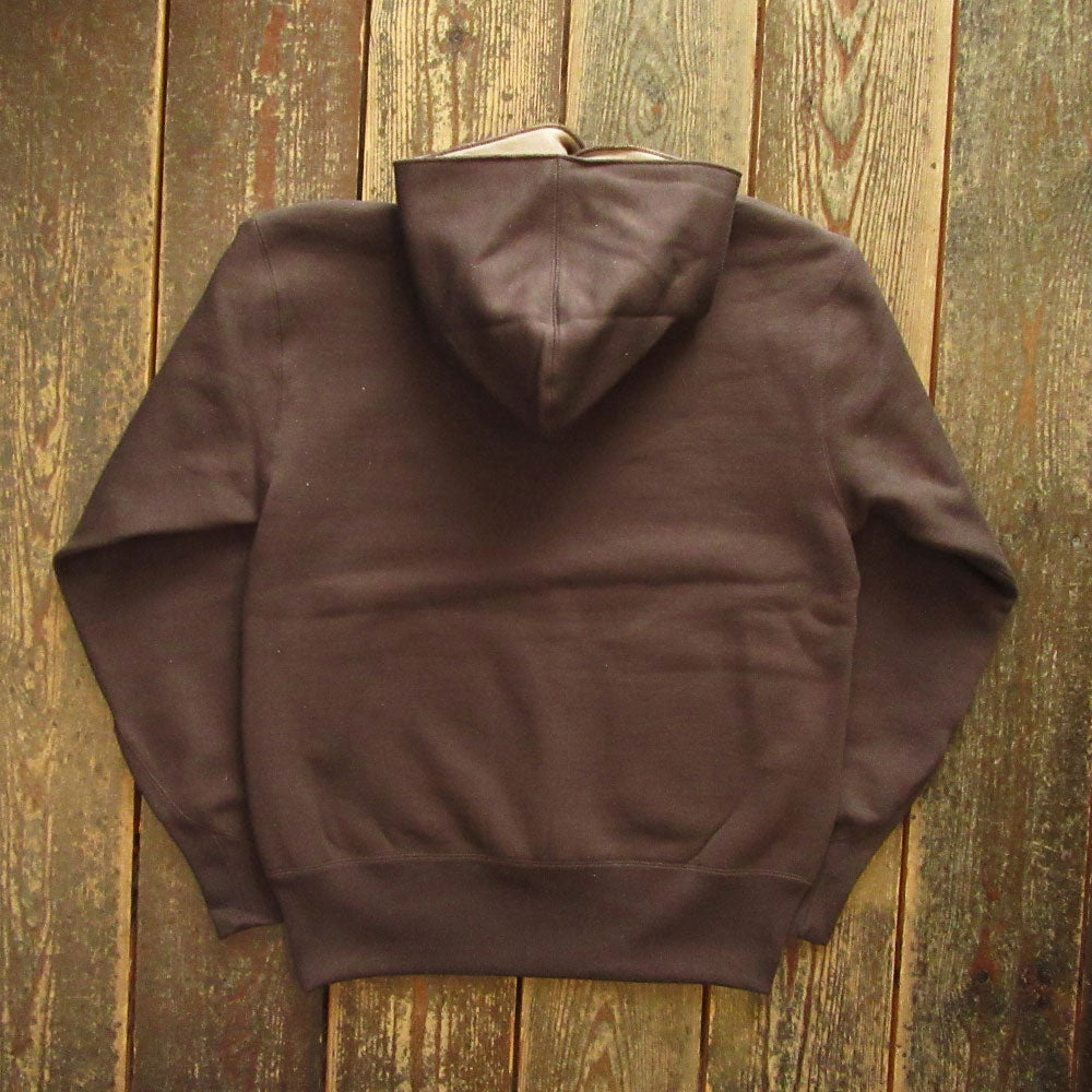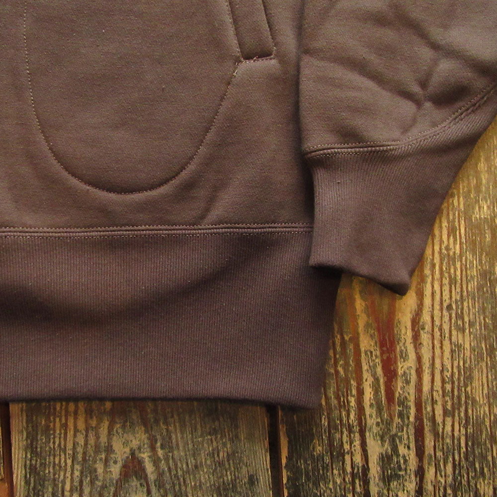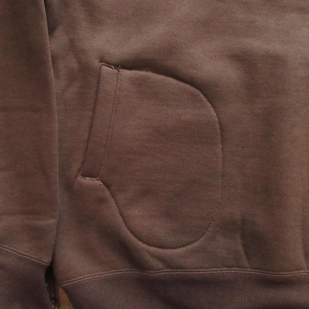 1920後半~1930年代をイメージし、フードは内側にミディアムウェイト生地を使用したWフェイス仕様でトリム部分はロックミシンで処理、特徴的なポケットはグローブポケットと呼ばれる形状、袖口は特徴的な深めに入ったV字のリブ仕様、ウエストリブは若干長め。洗い込み着込む程にヴィンテージ感溢れる雰囲気となる文字通りスペシャルなスウェットとなります。