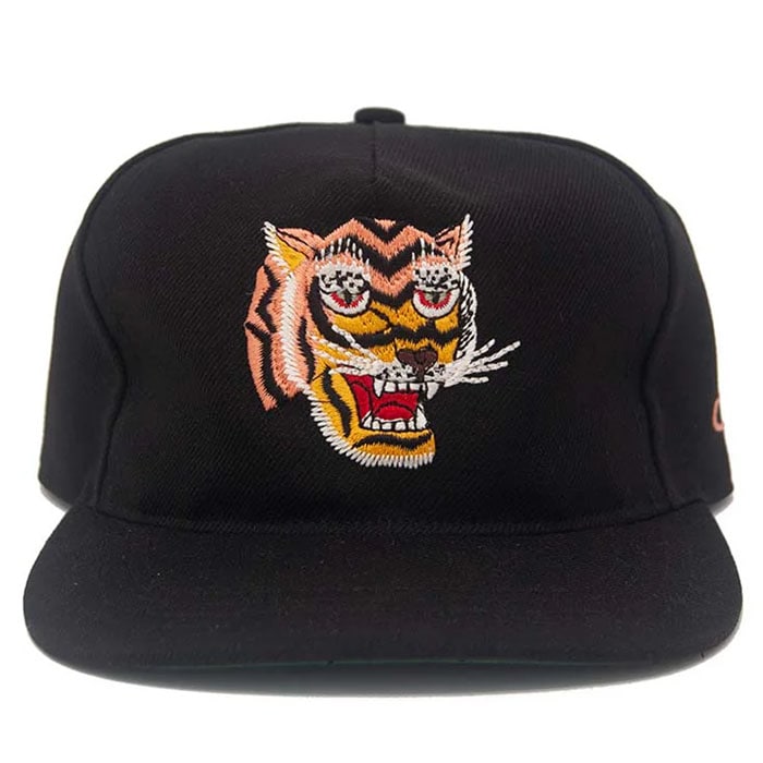 数年前、兄(ニック・ポタッシュ・カスタム・ジュエリー&エングレービング)と共同でコレクションの一環としてタイガーハットを制作しました。パッチは、兄のコレクションにあったベトナム戦争時代のスーベニアジャケットをモチーフにしています。 多くのご要望にお応えして、今回は耐久性のあるポリエステルアッパーとスナップバッククロージャーを採用して再登場しました。