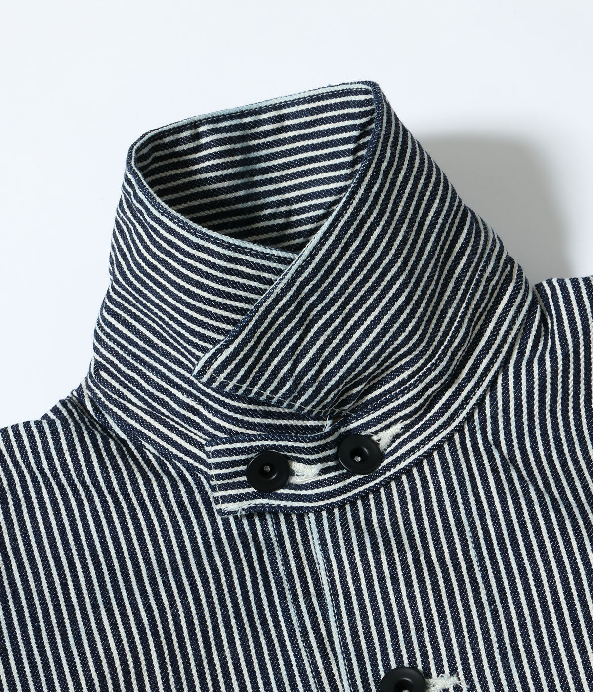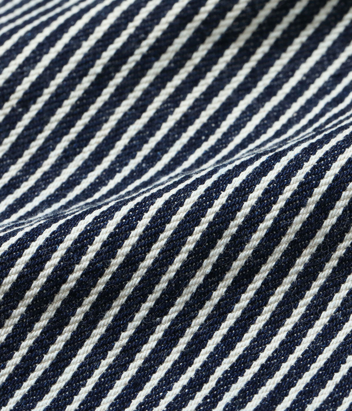 *ヒッコリー生地の性質上、ホワイトのストライプ上に多少インディゴが移染しております。予めご了承ください。