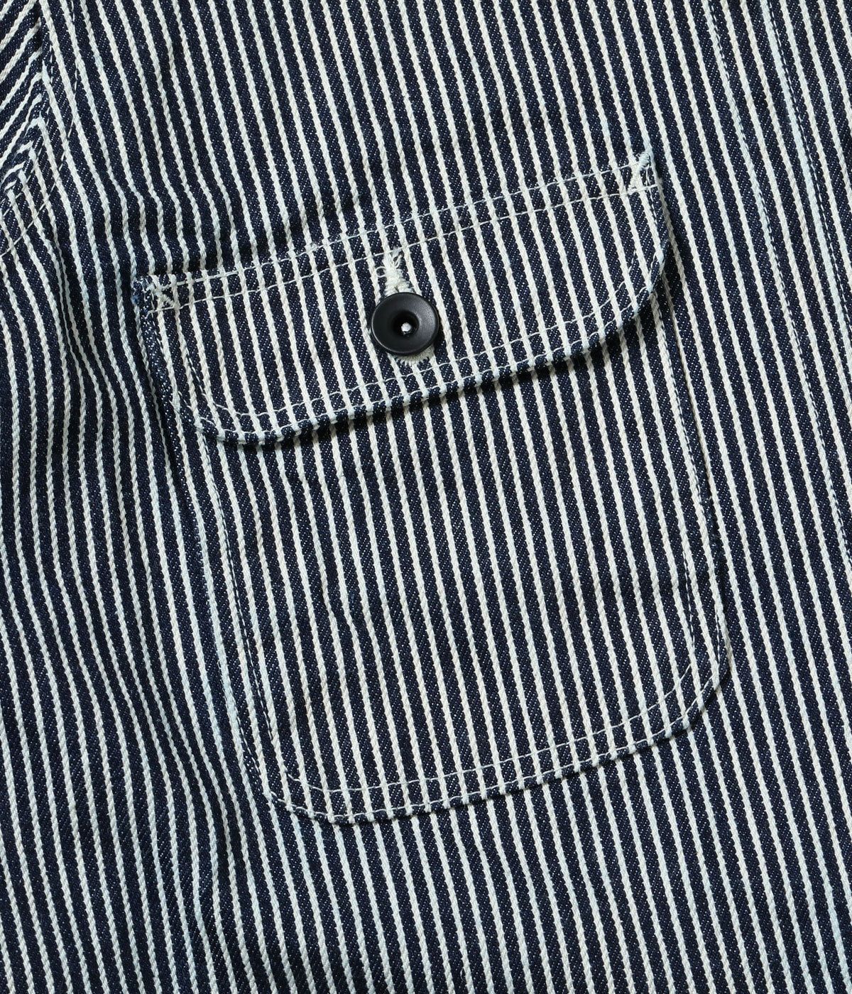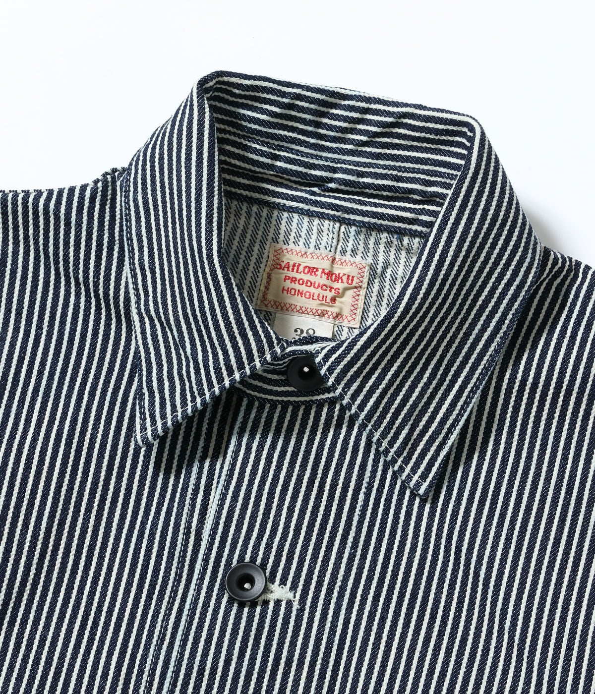 今回が初の展開となるハワイアンワークでのヒッコリーストライプ。その昔、ハワイ島のプランテーション・ワーカーたちの移動手段として、また収穫したパイナップルやサトウキビの運搬用として発展していったハワイ鉄道の一つ、ヒロ・レイルロード・カンパニーの鉄道員たちに支給されていたアイテムを再現している。このワークコートも、ハワイ島の小さな田舎町、ホノカアの近くにあるトレイン・ミュージアムに収められている資料と関係者の方々から集めた情報にハワイアンで使われていたヒッコリー・ストライプのワークウェアを復刻。ハワイの鉄道の歴史の中でも後期の頃にはヒッコリーも多く使われていた。
