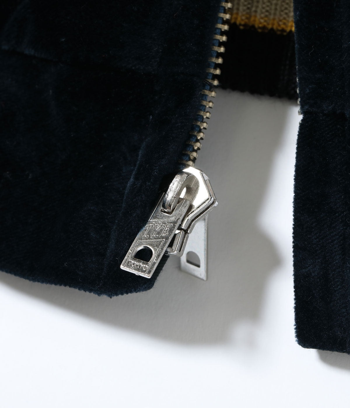 初期のスーベニアジャケットはアセテート生地のリバーシブル仕様が多いが、当時のバリエーションとして毛羽感のある別珍(べっちん)生地を使ったモデルも存在する。中綿を入れることで防寒性を高め、リバーシブル面のアセテートには中綿を押さえるためのキルティングが施されていた。