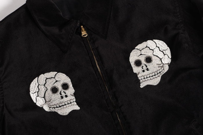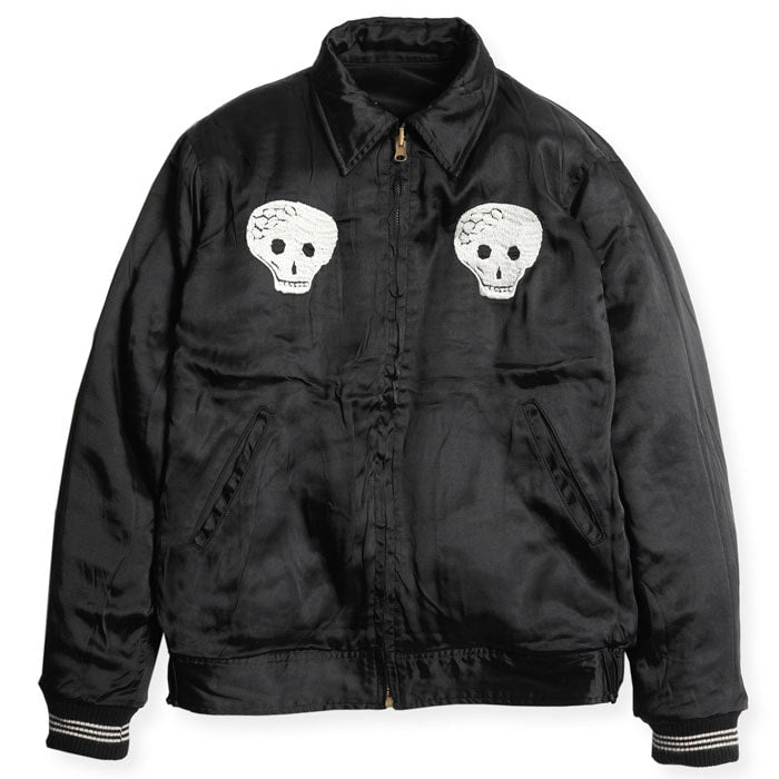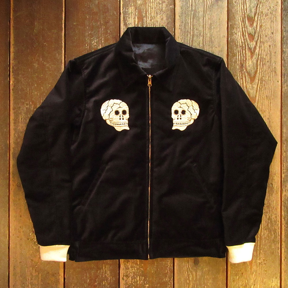 巳年でもある今季コレクションの中でも一際目を惹くアイコンとしてリリースするメインアイテムはリバーシブル仕様のスーベニアジャケットで。背面に大きくデザインされた刺繍には永遠のバイカーというテーマをスカル&ピストンのデザインをアイコン的に用いて表現。「好きなものに囚われて生涯を共にする自身のライフスタイル」という摂理を謳っています。一方、逆面のバック刺繍はVINTAGEオリジナルに忠実なSKULL/EAGLE/MT.FUJIを力強く描き、その刺繍は新潟の職人による丁寧な手作業で仕上げています。生地の片面には通気性に優れた綿100%による別珍素材。もう一方の面には、経糸はフィラメント糸で光沢を表現しながら、横糸にスパン糸を使用して膨らみも再現したレーヨン100%を採用。また、インシュレーションにロータスサーモを装備することで程よい保温性も確保。WALDES RV ZIPPERを使用。発売前から問合せの絶えない一枚です。