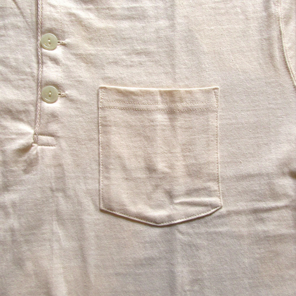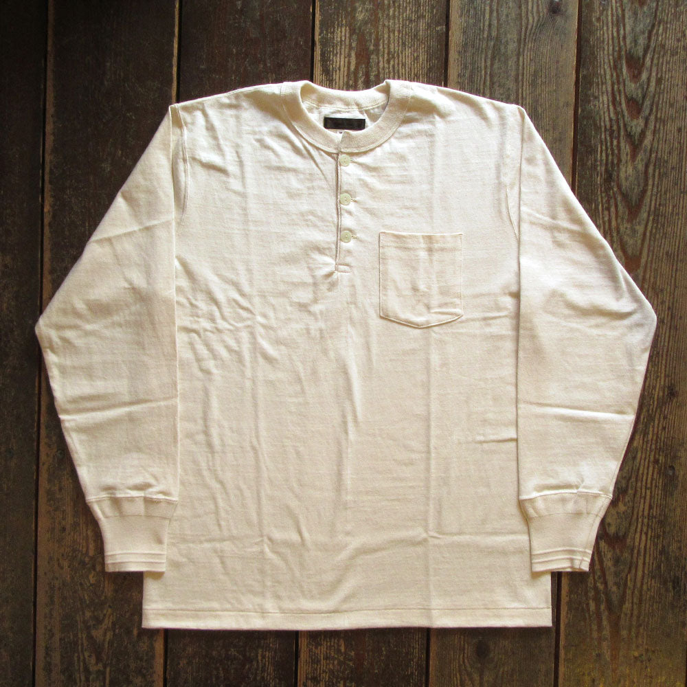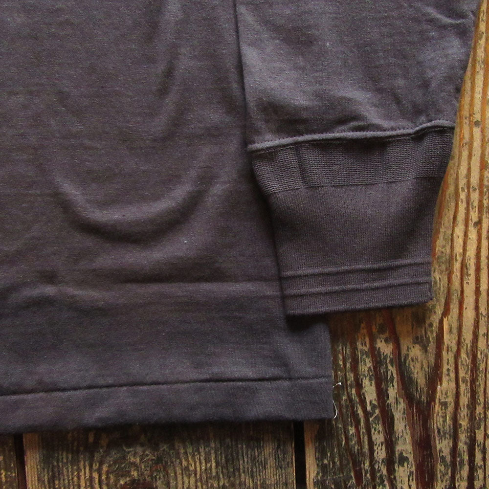 16番単糸を吊り編み機でゆっくりと編み上げた丸胴VINTAGE TEEシリーズからリリースする新作のヘンリーネック。「よりシンプルなものを一枚でも楽しめる」一枚はシルバーアクセとの相性も抜群。変わり編みの袖リブや絶妙の色味で合わせる前立ての杉綾テープなど、シンプルな中に映える各部の仕様も採用した上質な仕上がりになります。