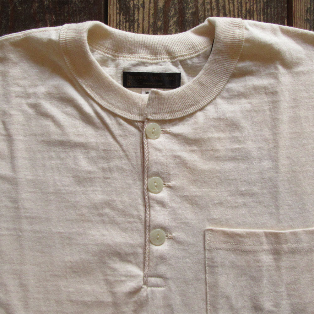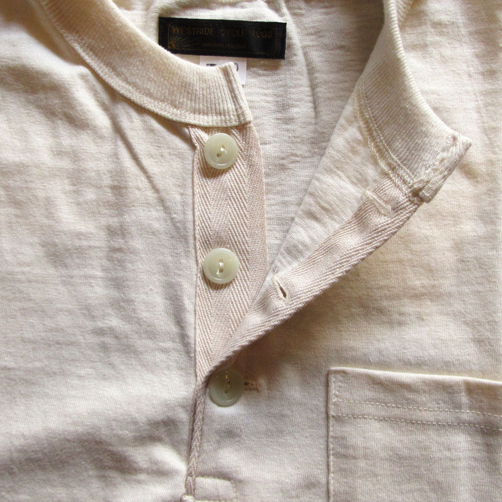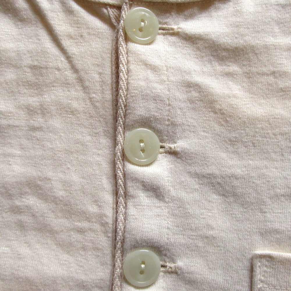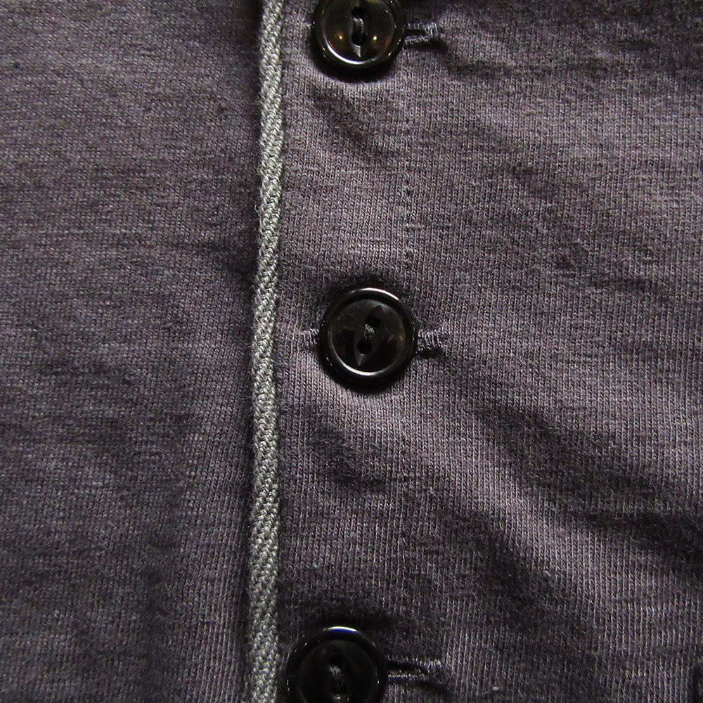 16番単糸を吊り編み機でゆっくりと編み上げた丸胴VINTAGE TEEシリーズからリリースする新作のヘンリーネック。「よりシンプルなものを一枚でも楽しめる」一枚はシルバーアクセとの相性も抜群。変わり編みの袖リブや絶妙の色味で合わせる前立ての杉綾テープなど、シンプルな中に映える各部の仕様も採用した上質な仕上がりになります。