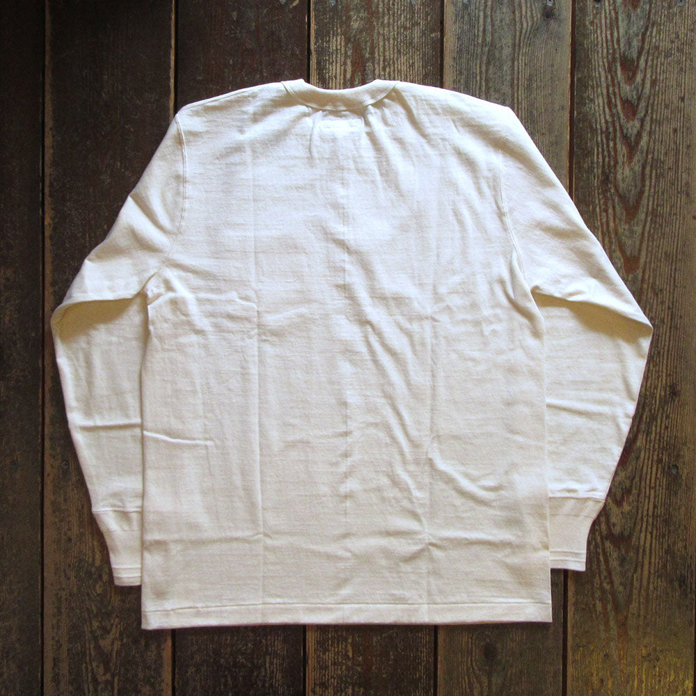 原点回帰でもある「古着」の表情をよりストレート且つ豊かに盛り込んで製作する一枚は16番単糸を吊り編み機でゆっくりと編み上げた丸胴仕上げ。旧い紡績技術により太い糸と細い糸が交ざり合うことで生まれる横段はこのシリーズならでは。身丈裾の縫製仕様に当時と同じ「天地縫い」を採用してシングルステッチ仕様に。ネック部のトリプルのバインディング仕上げやショルダーステッチなどの型崩れ防止が必要となる部位には従来通りの強度ある縫製法を使い分けて採用するという、拘りを満載した極上の一枚です。若干の斜行が特徴的なボディーは柔らかな着用感で気持ちゆったりとした着心地を提供。